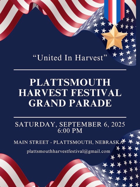 Below is the link to register for the Plattsmouth Harvest Festival Grand Parade, to be held on Saturday, September 6, 6:00 pm on Main Street.